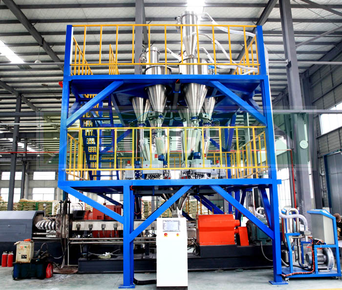 南京歐格的矢重式自動上料系統采用特制的攪拌上料系統,以確保各種原料混合的均勻。自動化控制保證系統運行穩定,按照生產配方將各組分別加入到料倉中,經真空上料機后充分攪拌,后將攪拌均勻的物料加入到擠出機的料斗中。該產品由公司優化設計,使其能夠適應各種型號的擠出機組。